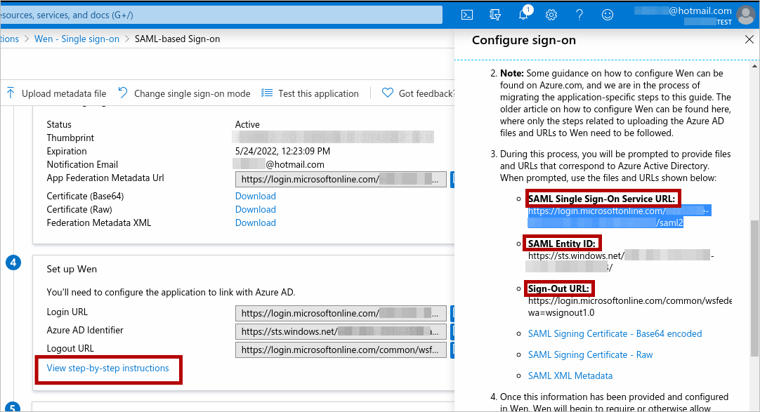 In the Set up section, click View step-by-step instructions. Then copy the following fields from Microsoft Azure to ProcessMaker in the Identity Provider section: