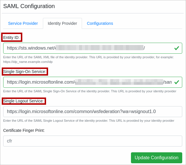 - SAML Single Sign-On Service URL to Single Sign-On Service.
