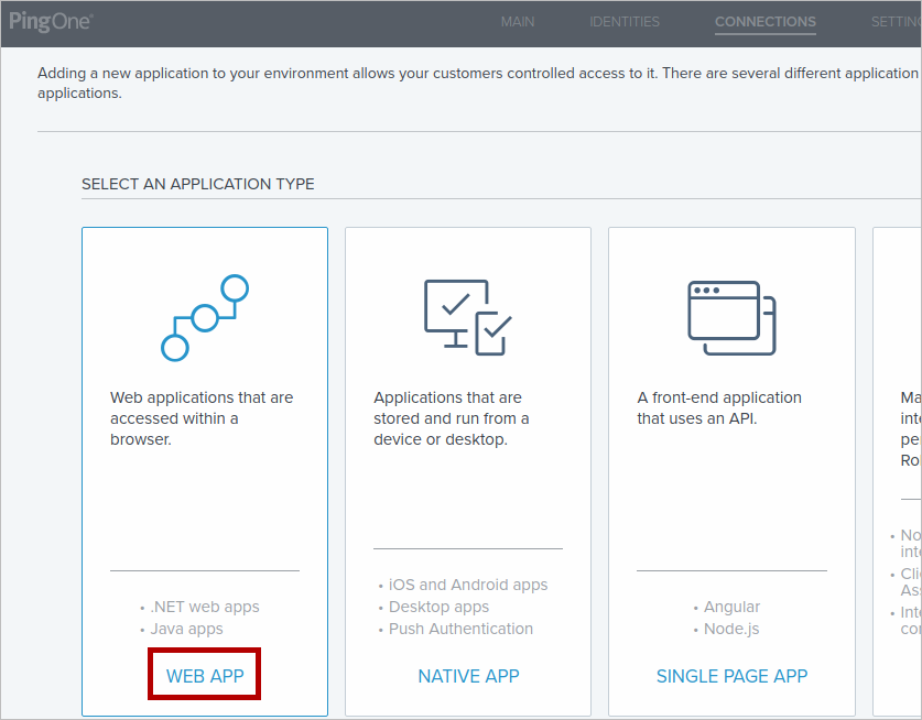 In the SELECT AN APPLICATION TYPE section, select the WEB APP option.