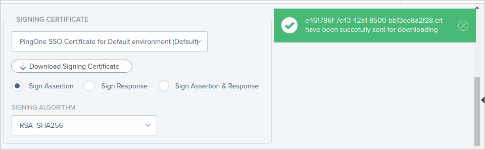 Select the .crt format, option and then the Signing Certificate is downloaded.