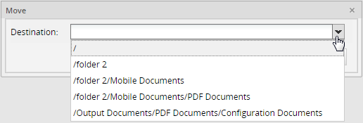 A drop down displays all available paths to move folders to. Select / to move the folder.