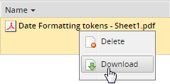 Download a file: Downloads a specific file previously chosen from the list. If the file has two versions available (.pdf and .doc), the pdf version will be downloaded.