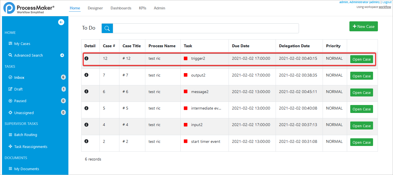 | 16 | Using an open case link. | The Dynaform designated as assigned object in the Supervisor window will be displayed. | |