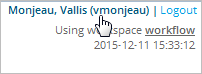 Any operator user is able to see the time zone set by default in his or her profile by clicking on the user name at the top right side of the window, next to the Logout option.