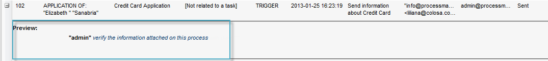 The log module displays information of all mails sent inside a process. This feature is optimized by emulating APP_MESSAGE inside the log, allowing emails to be searched using different search parameters.