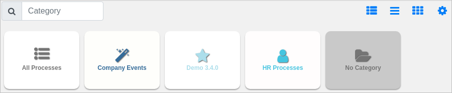 When you select a Category, all the processes related to that category displays below the ALL CATEGORIES container: