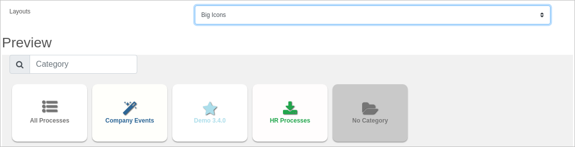 • Big Icons: Select Big Icons to display categories as big icons in a grid.
