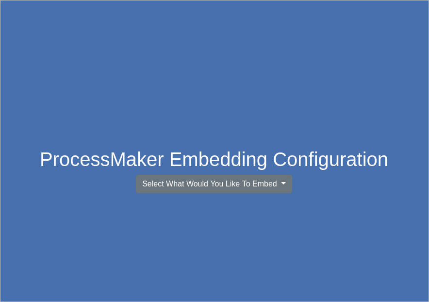 After clicking the Embedding Configuration option, the ProcessMaker Embedding Configuration screen displays.