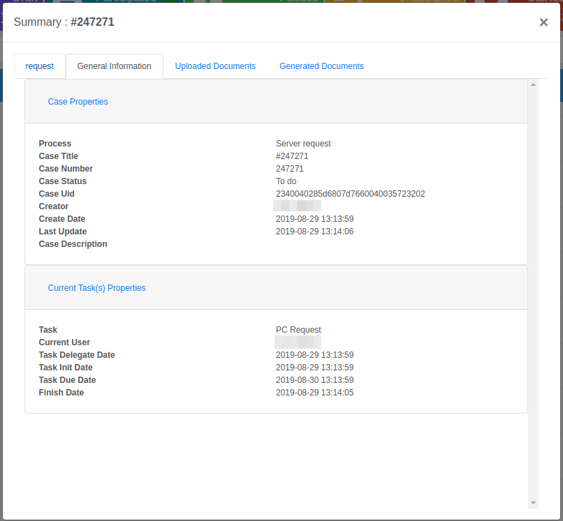 • Task: This is the name of the task where the case is at the moment in the flow of the process.
