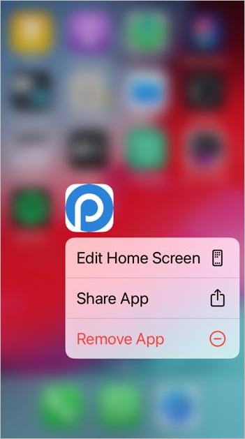 Uninstall ProcessMaker Mobile from the device by tapping on its icon without letting it go for a few seconds. All applications available to be uninstalled have a blue cross in the upper left part of their icon.