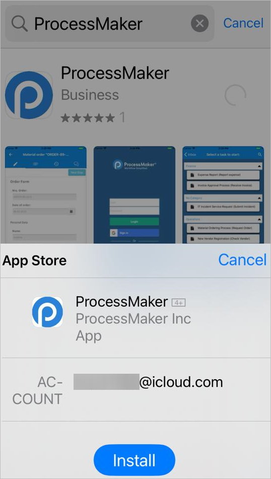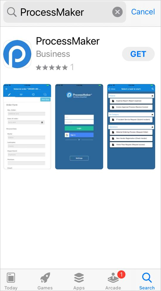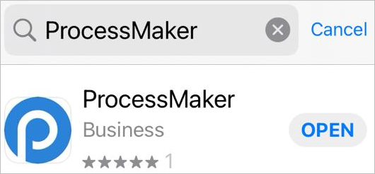 Enter "ProcessMaker" and tap the first search result that appears, which is the ProcessMaker Mobile app.