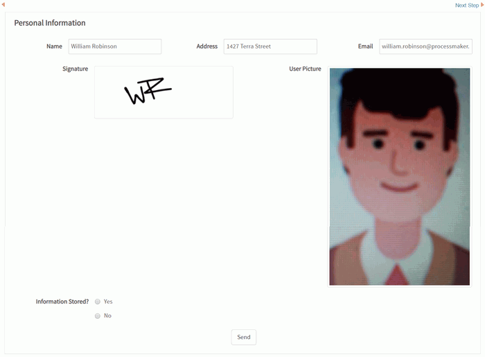 Observe that the information saved (image and signature) from the mobile application is intact.