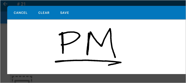 The third mobile control in the Dynaform is Signature. Once tapped, a blank space is available where the user can write their signature with their finger. Then, the user can tap one of three buttons: Cancel to go back to the form, Clear to erase the signature and start again and Save to store the signature that will be placed in the form.