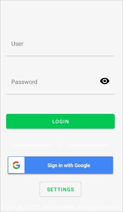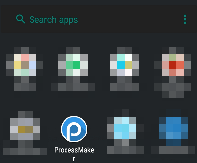 Now that the Dynaform has been properly created, a mobile phone can be used to try the controls in the Dynaform. Look for the ProcessMaker icon on the main screen of your cellphone, tap on it to open the mobile application and log on.