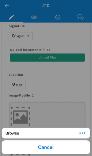 The next mobile control is Image, where the user can either choose a picture from the gallery or take a new one with their cellphone camera. This picture can be saved or discarded by the user to take a new picture. Once saved, the picture will be shown in the Image field and more pictures can be added.