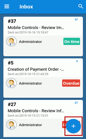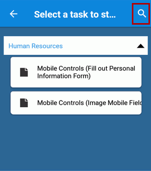 The mobile app allows users to search for a task in the task list. To search for a process, tap on the magnifying glass sign located at the top-right of the screen.