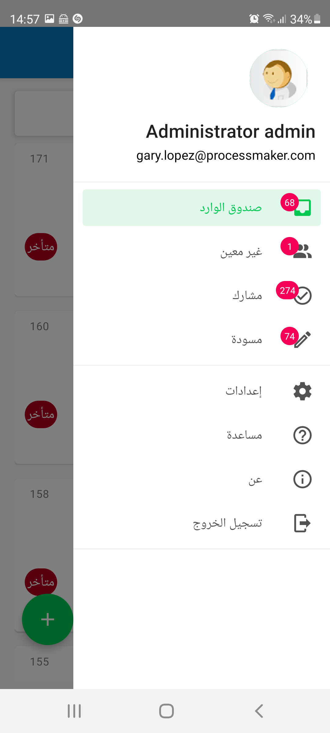The interface of the ProcessMaker Mobile app changes to support right-to-left orientation.