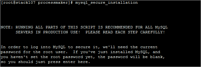 Warning: ProcessMaker does NOT support special characters (such as: @ # $ % ^ & ( /) in the root password. For more information, please read this section.