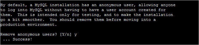 Before using MySQL, use the mysql_secure_installation command to set up a secure database environment. Log in as the root user and issue the following command: