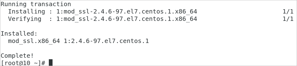 mod_ssl is an Apache module that provides SSL v2/v3 and TLS v1 support for the Apache HTTP server necessary for ProcessMaker. Run the commands in the following steps to install Apache 2.4 and the SSL module: