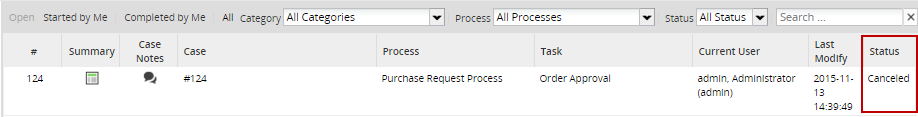 - Started by me: Only the cases started by the current user will be shown in the list.