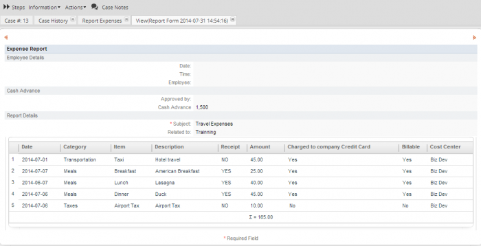 It shows all the email notifications sent during the process. Remember that it is not possible to restrict users per case history, that means all users will be able to see the case history no matter which permissions were set for them.