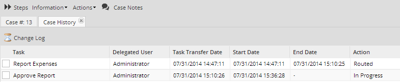 Click on the Case History option to open a new tab with the list of tasks routed or still in progress.