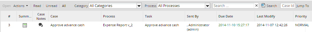 At the top of the screen there are different options to filter cases according to their process, to search for cases and to jump to a particular case. By default, the Inbox displays all cases but there are options to filter the ones that have been already opened and cases that haven't: