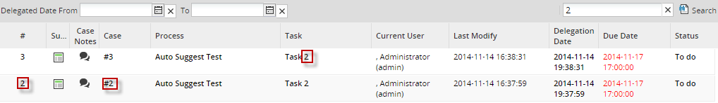 Search fields were added in version 2.8.0 and later, to be able to search when the current task was routed (delegated).