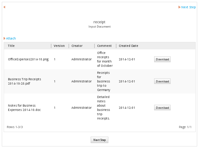 In some cases, it may not make sense for the user to be asked to submit an Input Document. For example, a process asks users to submit receipts for purchases as Input Documents. If nothing was purchased in the case, then there is no reason to Input Document for the receipts. If an Input Document should not always be executed as a step, then a condition can be added. Only if the condition evaluates to "true", then the step will be executed and the user will be asked to submit an Input Document.