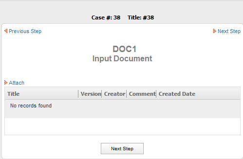 When a case comes to an Input Document step, a form will appear prompting the user to submit the document.