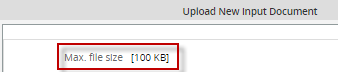 • Maximum file size: Available in version 2.8.0 and later. It is a required field which defines in KB or MB the maximum size of the file to be attached. If set to zero, then the file size is unlimited. Nevertheless, the limit is configured inside the php.ini file by the upload_max_size setting and that limit is shown in parenthesis when creating an Input Document.