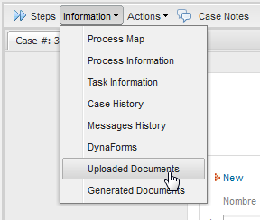 Once the case is open, click on the Information submenu at the top and then click on the Uploaded Documents button in the sidebar.