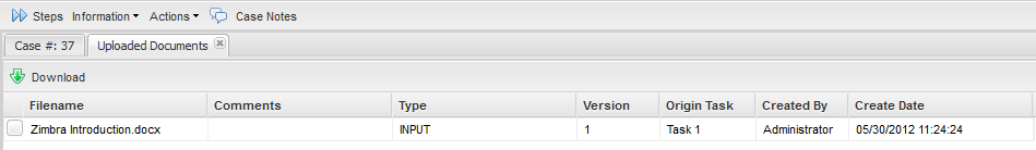 A dialog box will appear with a list of the Input Documents and attached files for the case. To view a document, click on its Download link on the right hand side, so it can be downloaded and opened on the local computer.