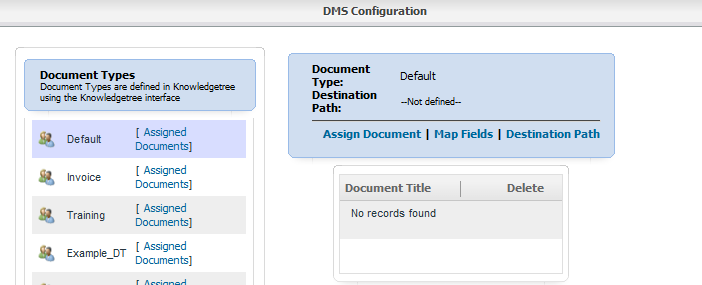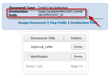 - Note: Each assigned document must have its own destination path and Map Fields.