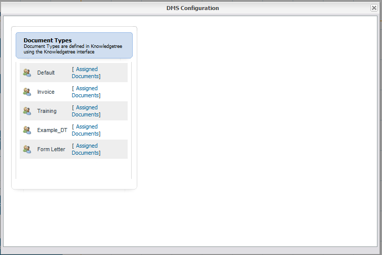 - Note: Document Types are defined in KnowledgeTree using the KnowledgeTree interface.