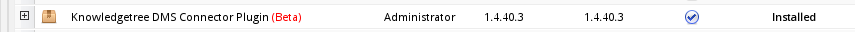 Once the KnowledgeTree DMS Connector plugin is enabled, a new KT Documents menu will appear in the top menu bar and a DMS Setup option will be added in the ADMIN > Plugins sidebar.