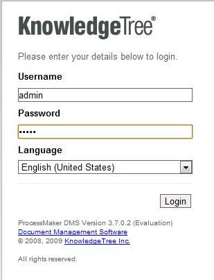 6. Log in to KnowledgeTree with the user used in the DMS Settings Configuration in ProcessMaker.