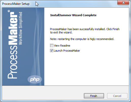 • View Readme: Check this option to see the "Readme" file for ProcessMaker.