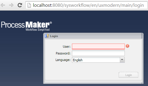 Remember that ProcessMaker is only compatible with Mozilla Firefox (all versions) and Internet Explorer 7+. If your default web browser is not compatible with ProcessMaker, then open a compatible web browser and manually enter the login URL. To login in the future, in the main Windows menu, go to Start > All Programs > ProcessMaker > ProcessMaker to use the "workflow" workspace (or ProcessMaker Sample to use the "sample" workspace). For more information, see Login.