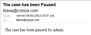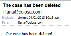 Finally, deleting the case, the following notification will be sent, to the user or users who were defined on the above function: