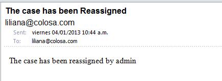 After selecting the trigger and reassigning the case, the following notification will be sent, to the user or users who were defined on the above function: