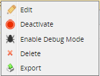 Edit Process: This option allows the process name and its description to be modified. It also provides options to activate Debug Mode and set a calendar for the process.