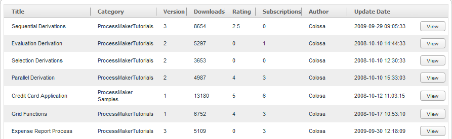 This tab introduces the user to select amongst seven options displayed on a sub menu, as well as a search tab to make a better searching of a list of processes created. Moreover, it also displays a list of processes created by users, so they are able to select one of them to start working on. It also provides detailed information of each process under the main menu as below: