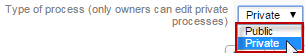 Select from the dropdown menu whether the process will be private or public. By default all processes are public and accessed by all users.