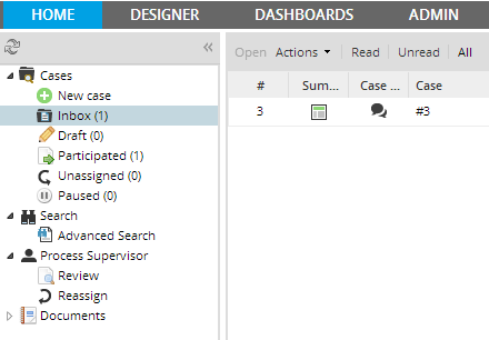 The PM_CASES permission provides access to the HOME menu and the ability to run cases and view lists of cases which the user has been assigned to or participated in. This permission provides access to the Cases section in the sidebar and its suboptions: New Case, Inbox, Draft, Participated, Unassigned and Paused.
