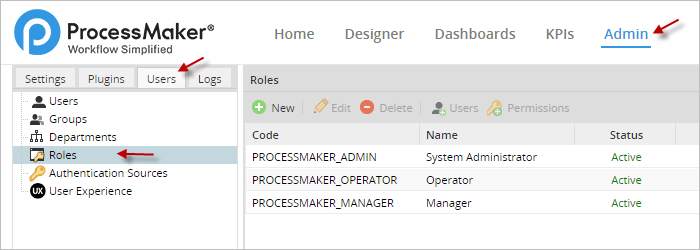 Note: If a role is set as INACTIVE, and a user is assigned to that role, the user can NOT login to ProcessMaker until the role is changed to ACTIVE