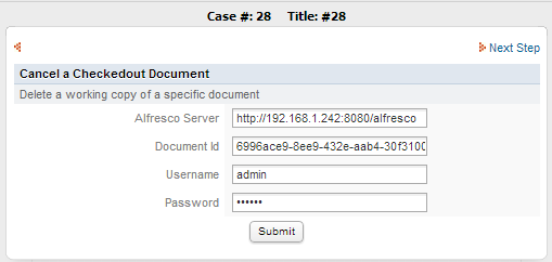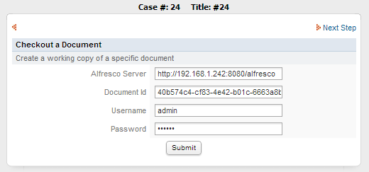 Click on Submit and check if the document has been checked out using the ProcessMaker Debug