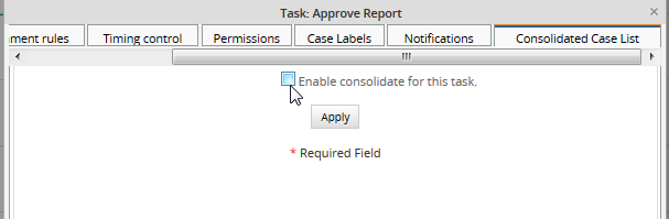 To activate the plug-in right click on task properties where the batch routing will be applied, click on Consolidated Cases List tab select Enable consolidate for this task checkbox as the image below: