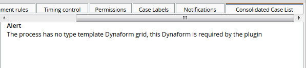 If there's no grid created in a Dynaform the following message will display: